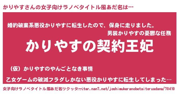 | 胡散臭い通販商品みたいなあだ名 | 『来世でも幸せになれる招き猫…その名も「かりやす」』 |