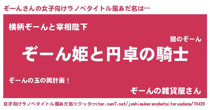 | 胡散臭い通販商品みたいなあだ名 | 『モテモテ間違いなしブレスレット…その名も「ぞーん」』 |