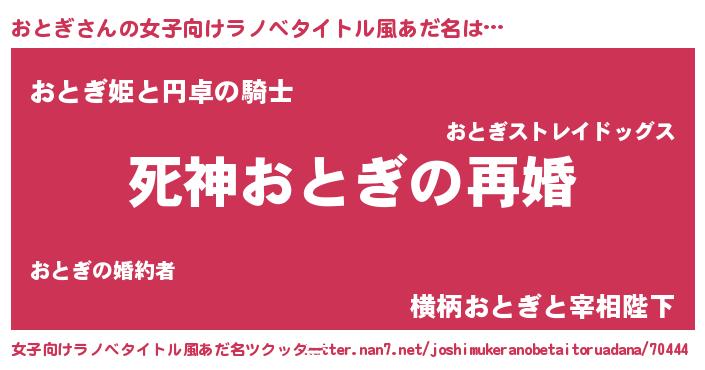 | 男性向けラノベタイトル風あだ名 | 『ノーゲーム・ノーオトギ』 |