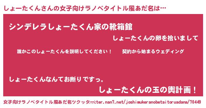 | 男性向けラノベタイトル風あだ名 | 『ショータクンアートオンライン』 |