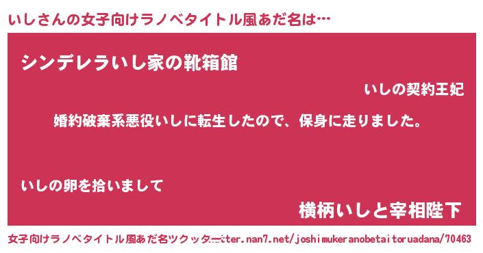 | 胡散臭い通販商品みたいなあだ名 | 『来世でも幸せになれる健康食品…その名も「いし」』 |