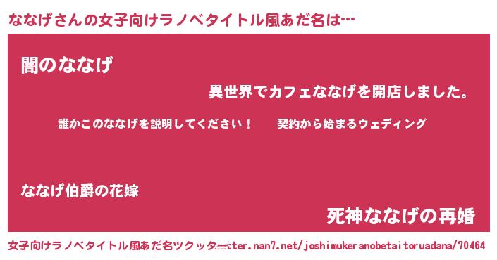 | 男性向けラノベタイトル風あだ名 | 『ナナゲアートオンライン』 |