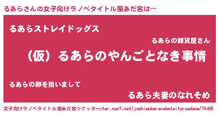 | 男性向けラノベタイトル風あだ名 | 『るあらの憂鬱』 |