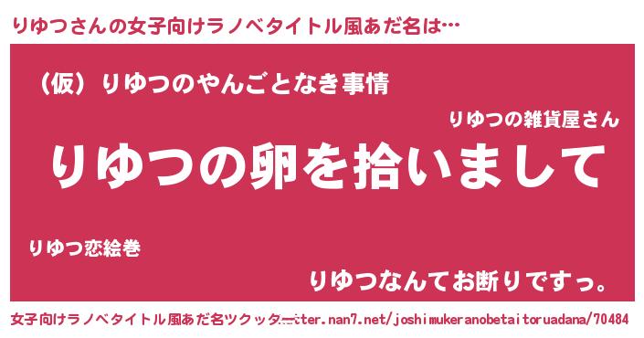 | 男性向けラノベタイトル風あだ名 | 『りゆつの嫁は女の子じゃないと思った?』 |