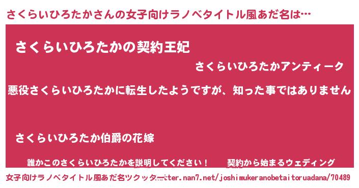 | 男性向けラノベタイトル風あだ名 | 『この素晴らしい世界にさくらいひろたかを!』 |