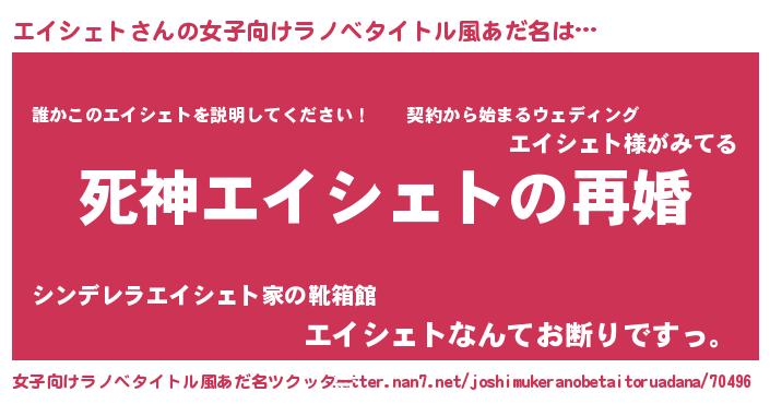 | 男性向けラノベタイトル風あだ名 | 『ノーゲーム・ノーエイシェト』 |