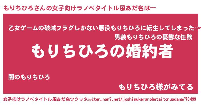 | 男性向けラノベタイトル風あだ名 | 『うちの娘の為ならば、俺はもしかしたらもりちひろも倒せるかもしれない。』 |