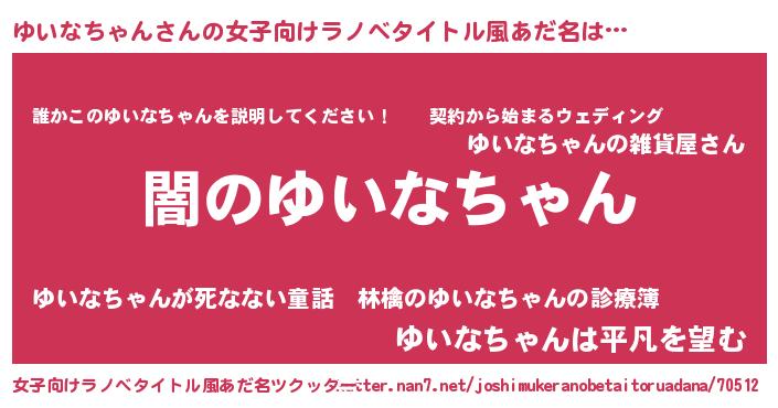 | 男性向けラノベタイトル風あだ名 | 『Re:ゆいなちゃんから始める異世界生活』 |