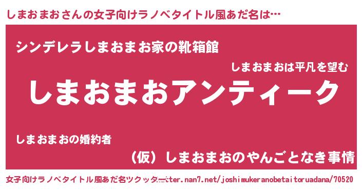 | 胡散臭い通販商品みたいなあだ名 | 『テレビで話題のアガリクス…その名も「しまおまお」』 |