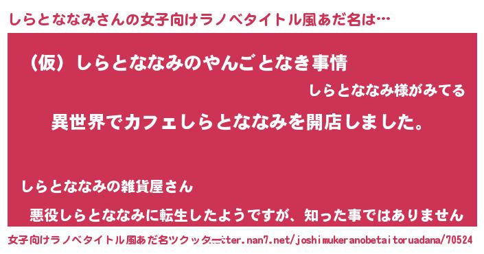| 意味不明あだ名 | 『永久保存しらとななみ』 |