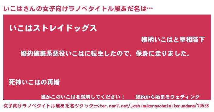 | 男性向けラノベタイトル風あだ名 | 『イコハスレイヤー』 |