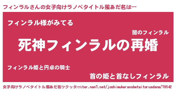 | 男性向けラノベタイトル風あだ名 | 『ノーゲーム・ノーフィンラル』 |