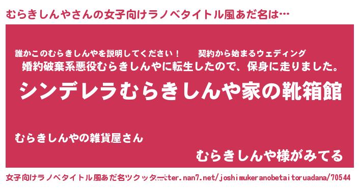 | 胡散臭い通販商品みたいなあだ名 | 『必ず成功する霊験あらたかなお札…その名も「むらきしんや」』 |