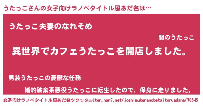 | 男性向けラノベタイトル風あだ名 | 『誰もが恐れるあのうたっこが、ぼくの専属メイドになるようです。』 |