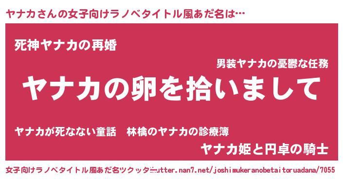 | 胡散臭い通販商品みたいなあだ名 | 『伝統あるサプリメント…その名も「ヤナカ」』 |