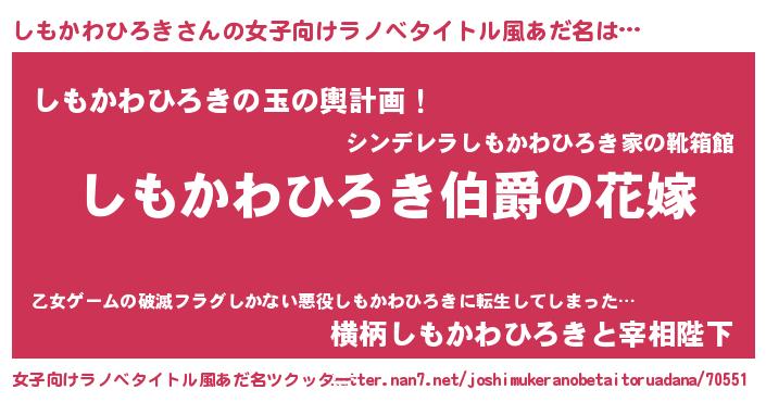 | ファンタジー風あだ名 | 『エターナルシモカワヒロキー』 |