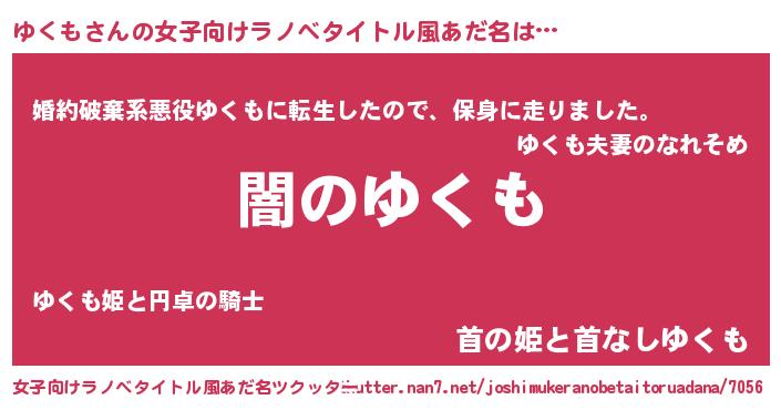 | ヒーロー風カッコイイあだ名 | 『最強戦士ユクモ』『愛の使者ゆくも』 |