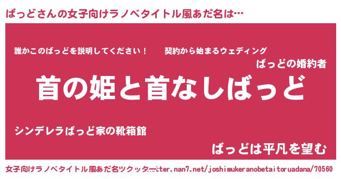 | 男性向けラノベタイトル風あだ名 | 『はたらくばっどさま!』 |