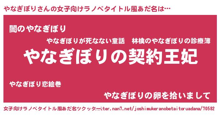 | 意味不明あだ名 | 『永久保存やなぎぼり』『自称やなぎぼり』 |
