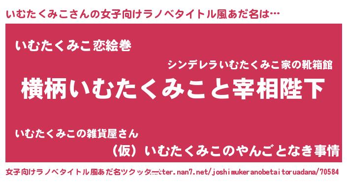 | 男性向けラノベタイトル風あだ名 | 『いむたくみこに滅ぼされるだけの簡単なお仕事です』 |
