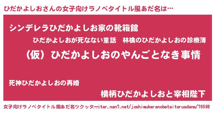 | 男性向けラノベタイトル風あだ名 | 『ひだかよしおの憂鬱』 |