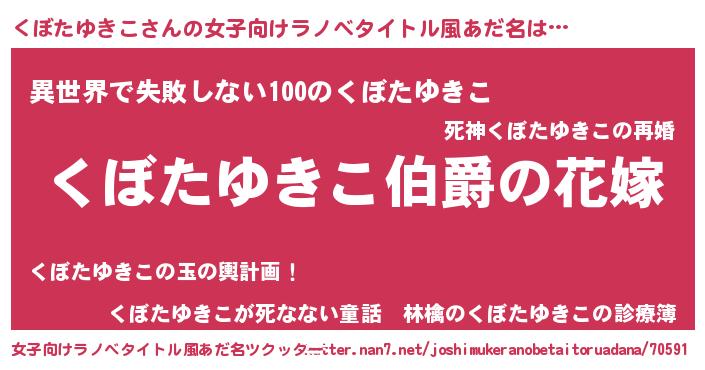 | 男性向けラノベタイトル風あだ名 | 『やはりくぼたゆきこの青春ラブコメはまちがっている 』 |