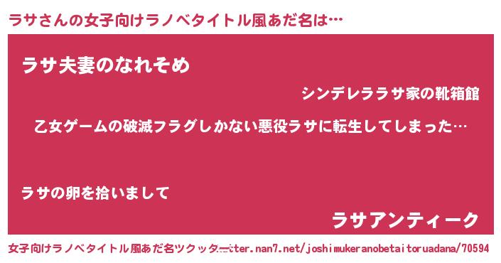 | 意味不明あだ名 | 『住所不定無職ラサ(6歳)』『自称ラサ』 |