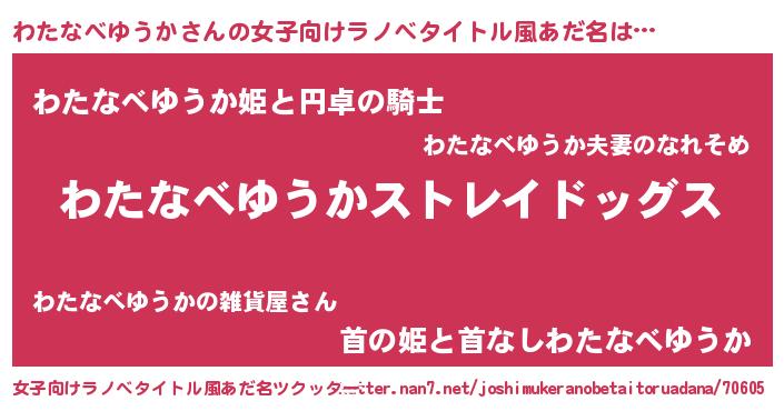 | 男性向けラノベタイトル風あだ名 | 『Re:わたなべゆうかから始める異世界生活』 |