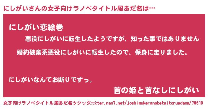 | 料理風あだ名 | 『にしがいごはん』 |