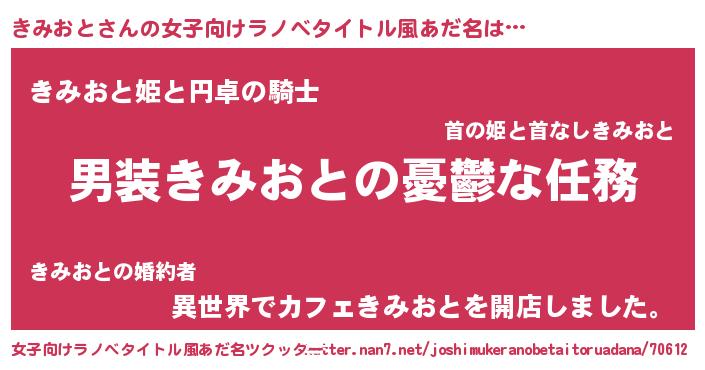 | 男性向けラノベタイトル風あだ名 | 『うちのきみおとが世界を掌握している!』 |