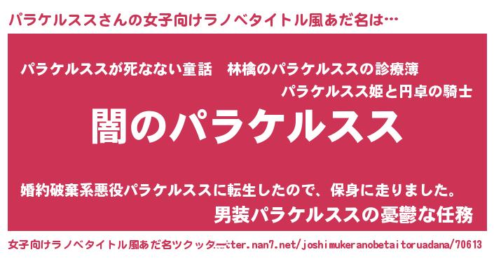 | 男性向けラノベタイトル風あだ名 | 『Re:パラケルススから始める異世界生活』 |