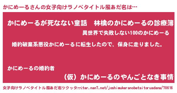 | 意味不明あだ名 | 『めかぶ科かにめーる属』 |