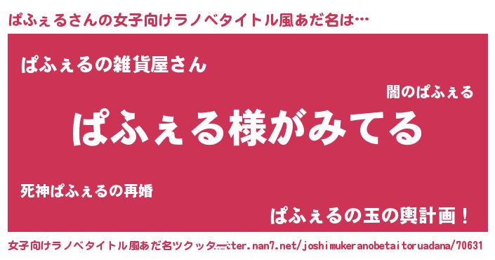 | 意味不明あだ名 | 『とにかく怪しいぱふぇる』 |