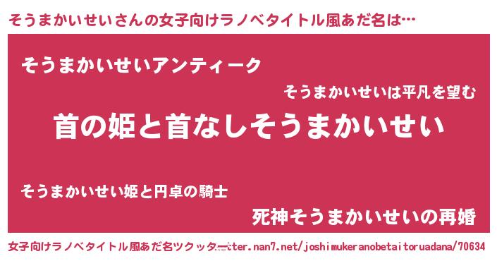 | 男性向けラノベタイトル風あだ名 | 『はたらくそうまかいせいさま!』 |