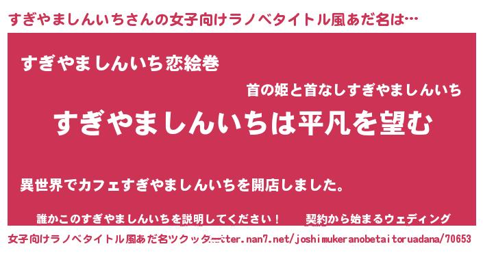 | 男性向けラノベタイトル風あだ名 | 『ダンジョンにすぎやましんいちを求めるのは間違っているだろうか』 |