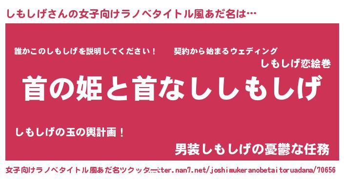 | 胡散臭い通販商品みたいなあだ名 | 『必ず成功する霊験あらたかなお札…その名も「しもしげ」』 |