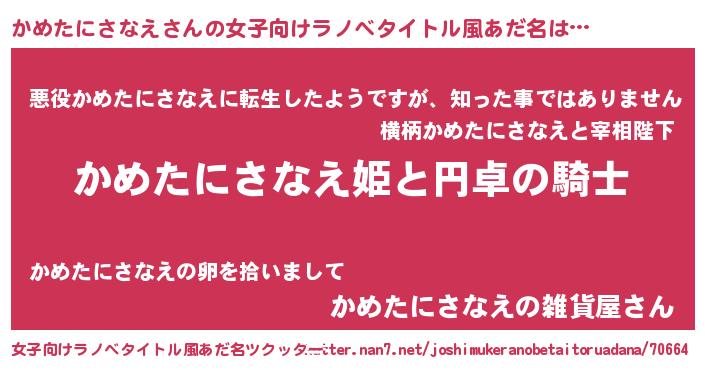 | 男性向けラノベタイトル風あだ名 | 『カメタニサナエアートオンライン』 |
