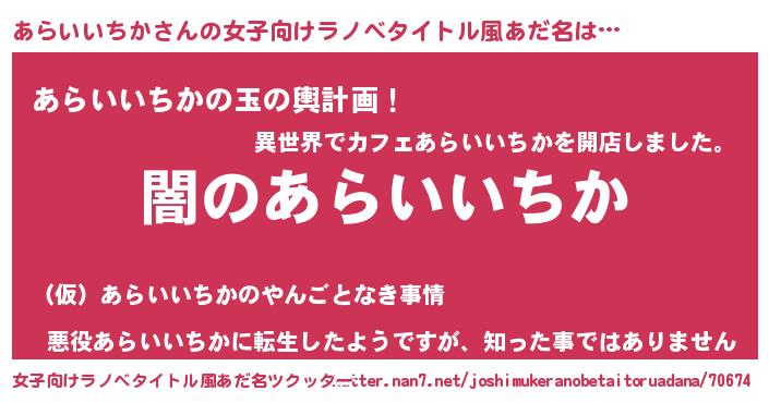 | 男性向けラノベタイトル風あだ名 | 『Re:あらいいちかから始める異世界生活』 |