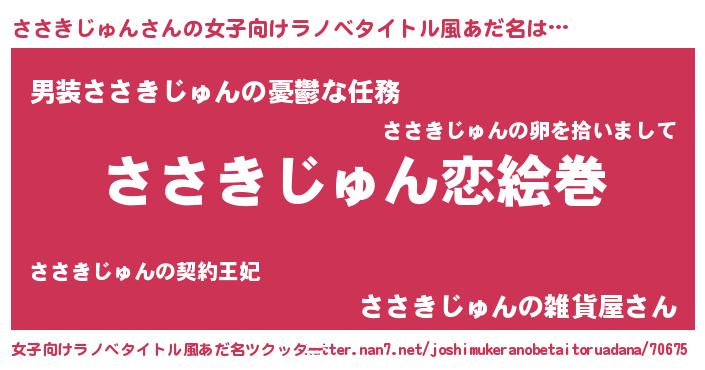 | 男性向けラノベタイトル風あだ名 | 『おまえをオタクにしてやるから、俺をささきじゅんにしてくれ! 』 |