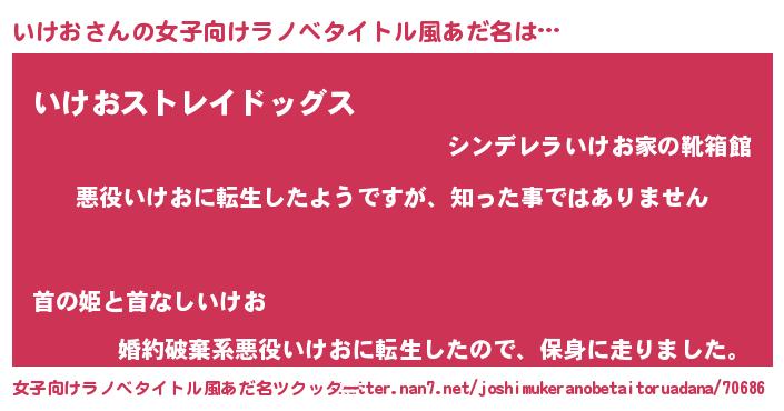 | 男性向けラノベタイトル風あだ名 | 『この素晴らしい世界にいけおを!』 |