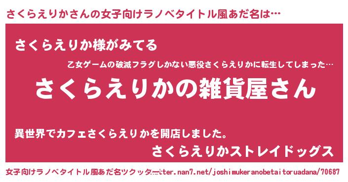 | 男性向けラノベタイトル風あだ名 | 『やはりさくらえりかの青春ラブコメはまちがっている 』 |