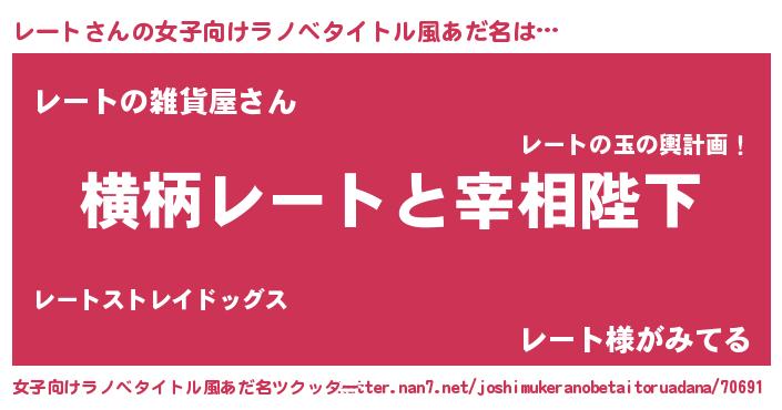 | 意味不明あだ名 | 『レートフォーエバー』『自称レート』 |