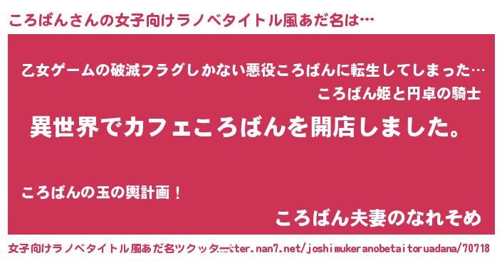 | 男性向けラノベタイトル風あだ名 | 『誰もが恐れるあのころばんが、ぼくの専属メイドになるようです。』 |