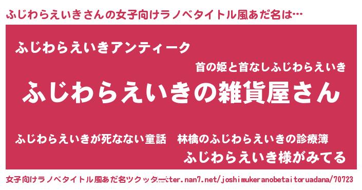 | 男性向けラノベタイトル風あだ名 | 『やはりふじわらえいきの青春ラブコメはまちがっている 』 |