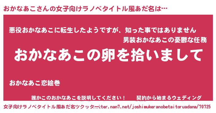 | 男性向けラノベタイトル風あだ名 | 『ダンジョンにおかなあこを求めるのは間違っているだろうか』 |