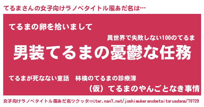 | 男性向けラノベタイトル風あだ名 | 『うちのてるまが世界を掌握している!』 |