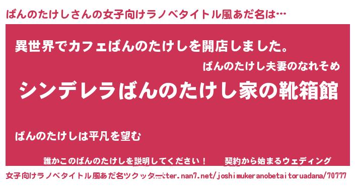 | 男性向けラノベタイトル風あだ名 | 『緋弾のバンノタケシ』 |