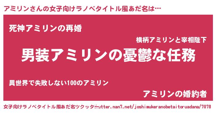 | 男性向けラノベタイトル風あだ名 | 『冴えないアミリンの育てかた』 |