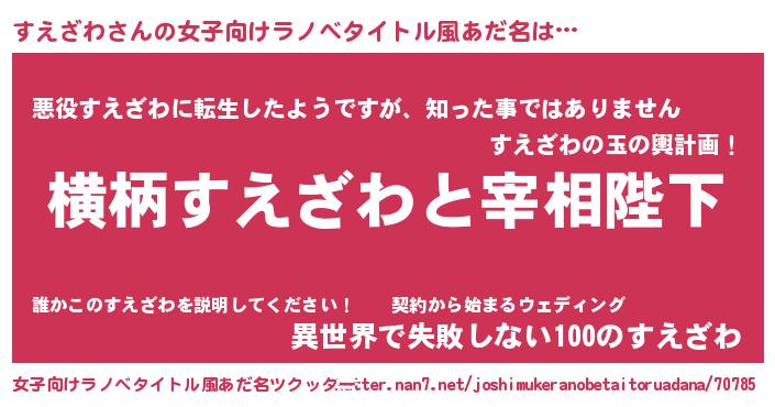 | 男性向けラノベタイトル風あだ名 | 『すえざわに滅ぼされるだけの簡単なお仕事です』 |