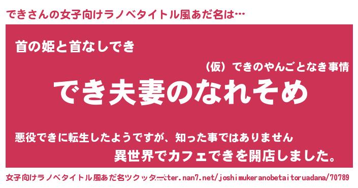 | 男性向けラノベタイトル風あだ名 | 『おまえをオタクにしてやるから、俺をできにしてくれ! 』 |